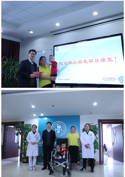 4月15日,善德公司部門經理喬龍等員工到病房看望了患兒,將善款送至患兒家屬手中,鼓勵林林要積極戰(zhàn)勝疾病,安心治療,爭取早日康復。