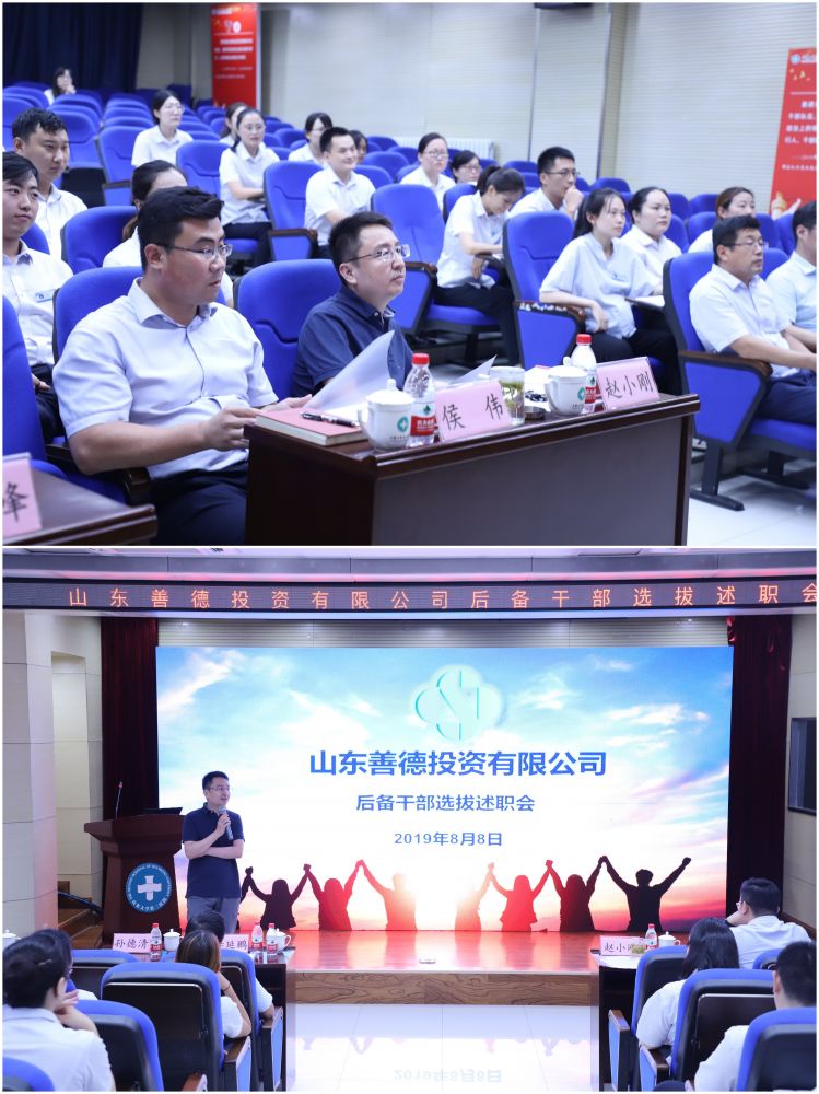 為加強(qiáng)公司人才梯隊(duì)建設(shè),儲(chǔ)備后備干部力量,善德公司于8月8日下午三點(diǎn)在文會(huì)學(xué)堂舉辦了第一屆后備干部選拔述職會(huì)。醫(yī)院黨委副書(shū)記兼副院長(zhǎng)趙小剛,公司董事長(zhǎng)侯偉,監(jiān)事李延鵬,董事司春峰、孫德清、王靜,副總經(jīng)理喬龍、韓晗,財(cái)務(wù)顧問(wèn)秦紅英等作為評(píng)委到場(chǎng)。
