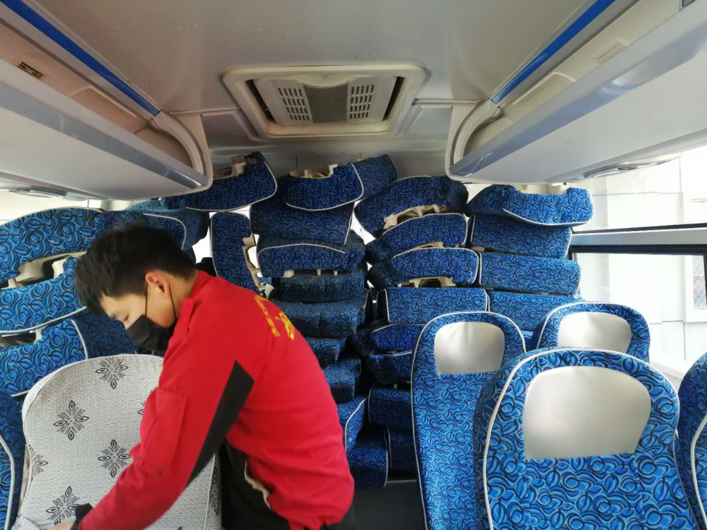 車(chē)隊(duì)領(lǐng)取了84消毒液、酒精、手套、口罩等防疫用品,每天早、中、晚各消殺一次,特別對(duì)門(mén)把手、方向盤(pán)等重點(diǎn)部位,做到全車(chē)覆蓋不留死角。駕駛員在出車(chē)過(guò)程中,佩戴好口罩和手套,與乘車(chē)人員保持適當(dāng)距離,盡量減少交談和接觸。車(chē)隊(duì)嚴(yán)格執(zhí)行“雙測(cè)溫兩報(bào)告”制度,全面監(jiān)測(cè)駕駛員身體狀況,確保乘車(chē)安全。