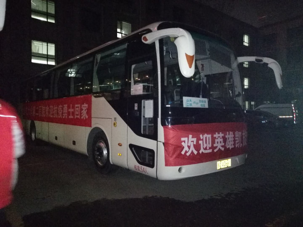 4月4日,第一、二批醫(yī)療隊(duì)成員結(jié)束隔離,凱旋歸來(lái)的前一天,正值清明假期,為了以最好的面貌迎接白衣勇士,車(chē)隊(duì)對(duì)車(chē)輛進(jìn)行了全面的安全檢查和清潔工作,一直到晚上九點(diǎn)停車(chē)場(chǎng)里還有他們忙碌的身影。4月5日凌晨五點(diǎn)半,車(chē)隊(duì)成員已經(jīng)就位,精神抖擻地前往隔離點(diǎn)迎接英雄凱旋。4月14日第三批醫(yī)療隊(duì)隊(duì)員和4月15日第四批醫(yī)療隊(duì)隊(duì)員歸來(lái)時(shí)也是如此。