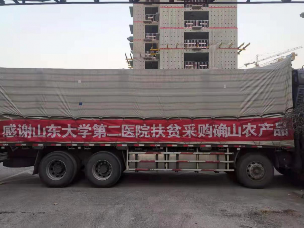 為響應(yīng)國家精準(zhǔn)扶貧政策,提高當(dāng)?shù)厝嗣袢罕娊?jīng)濟(jì)收入,善德公司承接醫(yī)院對河南確山的對口幫扶項目,1月6日上午7時,滿載著確山扶貧產(chǎn)品的貨車到達(dá)院內(nèi)停車場。