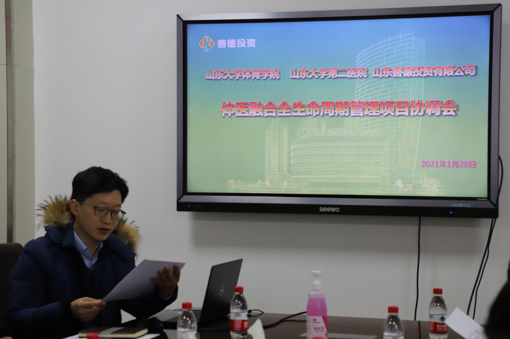 為加強項目交流合作,推進體醫(yī)融合項目成功立項,1月28日上午,善德公司副總經理喬龍于辦公樓三樓會議室組織召開體醫(yī)融合全生命周期管理項目研討會,山東大學體育學院副教授丁慶建,山東大學第二醫(yī)院團委書記劉書紅、醫(yī)務部副主任霍延青、科研與國際合作交流部副主任杜魯濤、健康管理科副主任趙延英、社區(qū)衛(wèi)生服務科副主任柳相珍、康復醫(yī)學科黃來剛,浪潮科技孔輝等受邀參加會議,公司相關部門負責人列席。