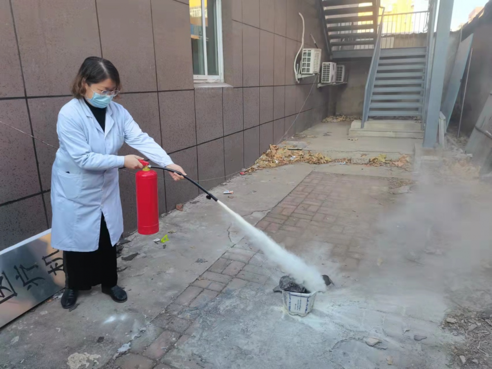 演練通過模擬接診處起火展開,臨近人員發(fā)現(xiàn)火情后,立即進行上報,啟動消防應(yīng)急疏散預(yù)案,同時迅速撥打“119”報警。指揮組、滅火組、疏散組、救護組等成員按照分工,有條不紊地切斷電源、使用滅火器、疏散病人、搶救物資等。隨后宋麗麗、張家香、楊麗向員工講解并示范了滅火器的使用方法,現(xiàn)場員工逐一上場進行了實際操作。
