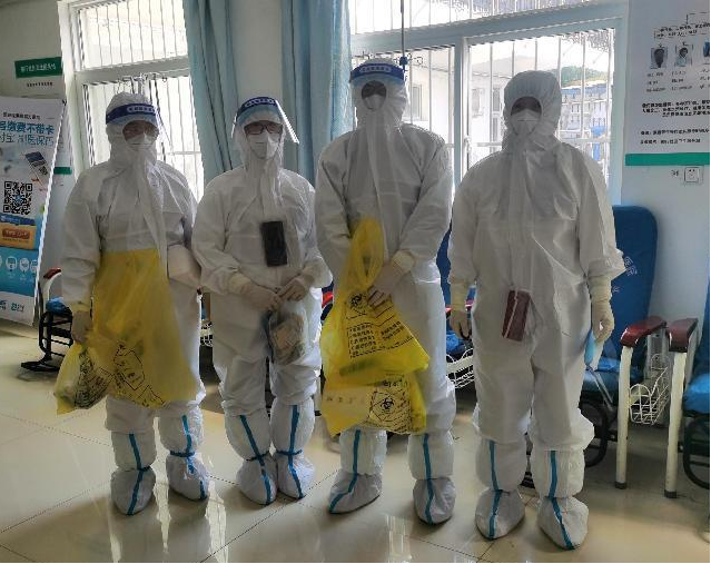 善德公司社區(qū)醫(yī)療事業(yè)部的王麗麗就是其中一位,她所在的工作地點(diǎn)是密切接觸者集中隔離點(diǎn),疫情期間,集中隔離點(diǎn)無疑是離危險(xiǎn)最近的地方,但是她舍小家顧大家,主動參與到隔離點(diǎn)的防控工作中,義無反顧地沖到了防疫第一線。自2021年12月加入防疫應(yīng)急小組,截止到今年4月份,她已經(jīng)持續(xù)工作5個(gè)月,本來在結(jié)束隔離后終于回到家中,可是濟(jì)南市疫情再次嚴(yán)重,在4月20日凌晨1點(diǎn)接到返崗?fù)ㄖ?,王麗麗立即?zhǔn)備,高度服從安排,緊急到崗?!拔抑饕?fù)責(zé)的是隔離點(diǎn)的防疫工作,每天接觸的都是密接者或次密接,風(fēng)險(xiǎn)還是很大的,尤其每次采集核酸與他們面對面,心里難免會緊張、擔(dān)心”,王麗麗笑著說道,“最讓我記憶猶新的還是經(jīng)常要半夜跟車前往車站和機(jī)場接管高風(fēng)險(xiǎn)地區(qū)返濟(jì)人員,每次不僅要嚴(yán)格做好防疫措施,還要注意每一個(gè)細(xì)節(jié),安撫好被隔離人員的情緒”。在善德的隊(duì)伍中,不乏像王麗麗這樣的醫(yī)護(hù)人員,在面對不斷嚴(yán)重的濟(jì)南疫情,軍休五所診所負(fù)責(zé)人張世梅和中醫(yī)醫(yī)師翟文麗也主動報(bào)名參加了濟(jì)南市的核酸檢測工作。