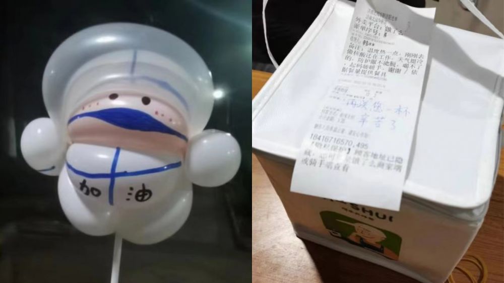 堅(jiān)守防控前線困難重重,但是在忙碌而緊張的工作中總能收獲一些令人難忘的感動,傳遞抗疫必勝的信念和力量。穿著密不透風(fēng)的防護(hù)服,汗水濕透了衣服,身心俱疲的時(shí)候,總能聽到居民發(fā)自肺腑的感謝;值班到深夜,來不及吃一口熱乎飯的時(shí)候,總能得到暖心的“投喂”;為維持現(xiàn)場秩序,嗓子喊得嘶啞,忙的腳不離地的時(shí)候,總能收獲小朋友可愛的小手工……在這個(gè)特別的春天里,“大白”的身影一次次主動上前,暖心瞬間也一幕幕上演。
