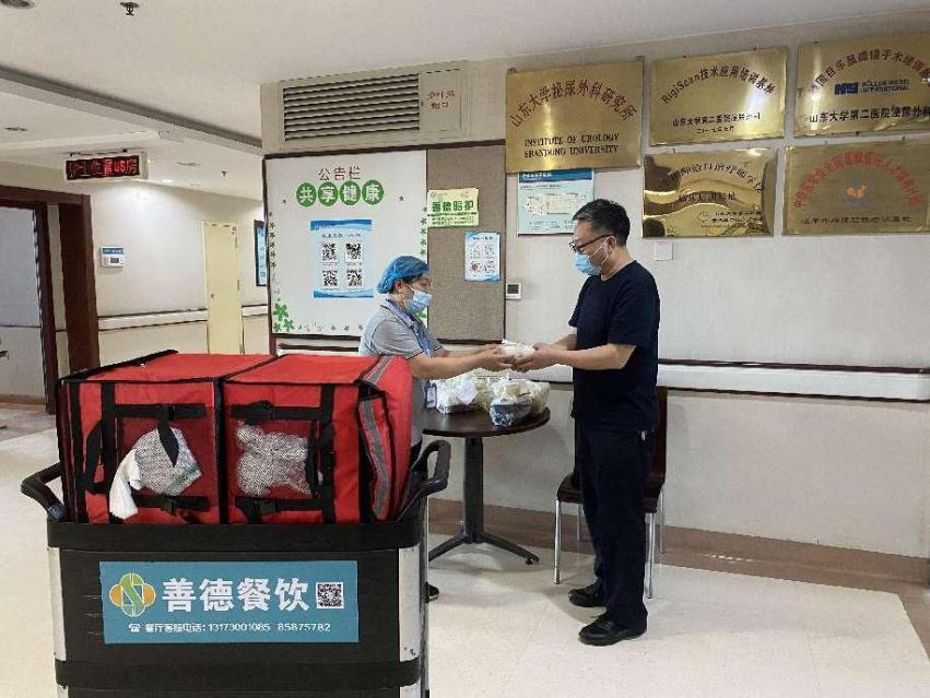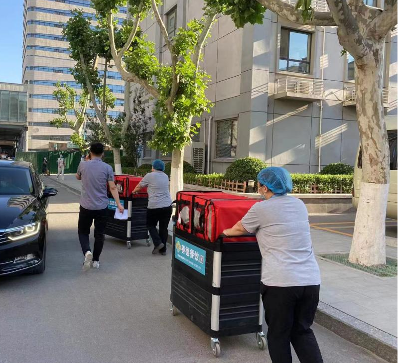 3月底,濟(jì)南市相繼出現(xiàn)確診病例,全市餐飲經(jīng)營場所暫停堂食,善德餐廳也積極響應(yīng)號召,暫停堂食供應(yīng),但考慮到在院學(xué)生、實(shí)驗(yàn)室人員疫情期間用餐不便,餐廳依然堅(jiān)持餐車供餐服務(wù),確保濱河商務(wù)中心三餐正常供應(yīng)。