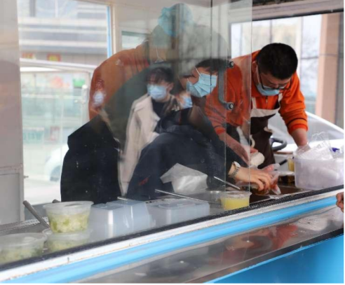 在提升院內(nèi)學生就餐體驗的同時,餐廳也在不斷改善濱河商務中心學生的供餐服務。今年3月份,濟南市餐飲經(jīng)營場所暫停堂食,善德餐廳也積極響應號召,暫停堂食供應,開通窗口取餐,并接受線上下單??紤]到濱河商務中心學生疫情期間用餐不便,餐廳依然堅持餐車供餐服務,確保三餐正常供應。臨近“五一”假期,疫情防控形勢更加嚴峻,醫(yī)院開始實行閉環(huán)管理,餐廳緊急研究協(xié)調(diào)人員留守店內(nèi),由于送餐人手緊張,濱河餐車供餐采用外賣送餐方式,學生們只要提前在公眾號線上微餐廳下單,餐廳就會在就餐時間點準時送達。餐廳每日提供可選菜品近100種,更好地滿足了疫情管控期間同學們多樣化的用餐需求,每天送餐共計500余單,完全能夠保障濱河商務中心100余人用餐需求。