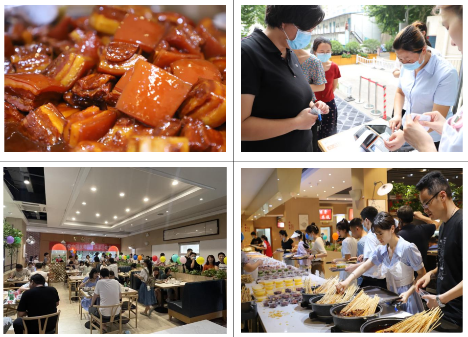 走進(jìn)活動現(xiàn)場,五彩繽紛的氣球和彩帶將現(xiàn)場裝飾一新,暖光燈下鮮艷的康乃馨營造出溫馨的就餐環(huán)境。在美食區(qū),大廚們傾心準(zhǔn)備的系列美食整齊的陳列在餐臺上,提供的美食品類繁多、涵蓋各地特色,有大明湖脆藕、博山炸肉、棗莊辣子雞等各種本地特色菜品,也有杭州東坡肉、四川傳統(tǒng)脆皮五花、陜西米皮等極具地域特色的代表美食,還有甜沫等老濟(jì)南傳統(tǒng)名吃……除了美食區(qū)營養(yǎng)豐富的菜品外,現(xiàn)場特色檔口、自助用餐區(qū)均正常開設(shè),充分滿足大家多樣化的用餐需求。