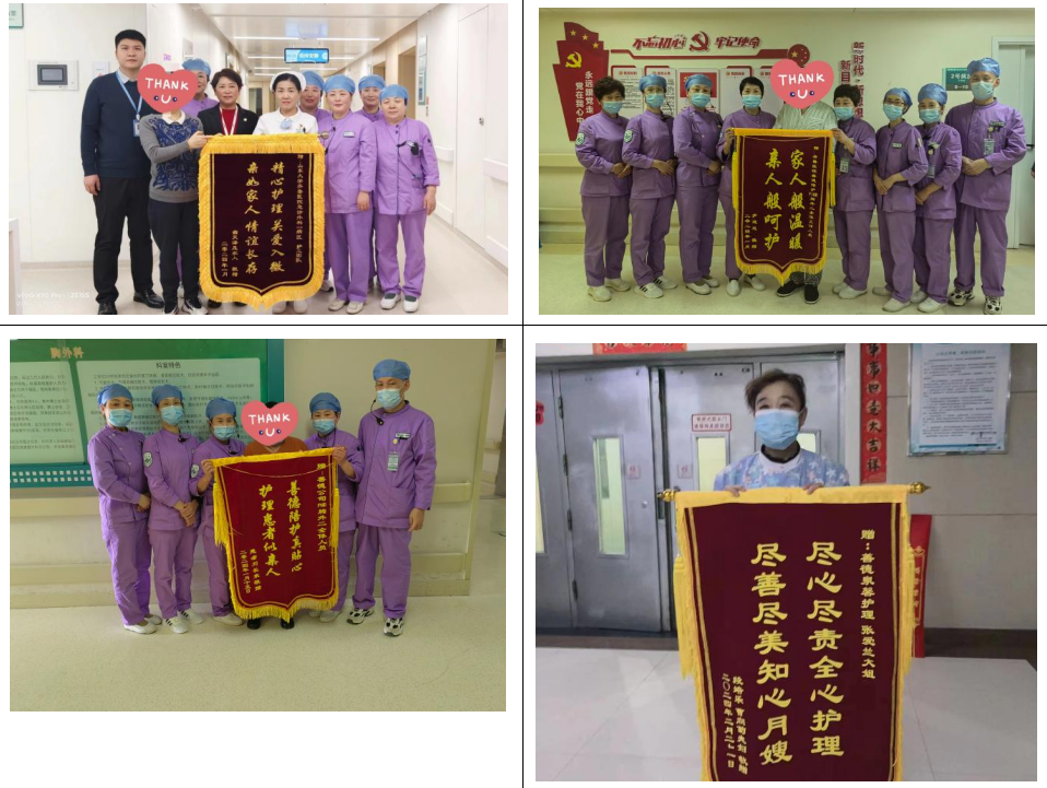 這樣的生死時(shí)速幾乎每天都會(huì)出現(xiàn),像鄭德這樣的護(hù)理員,在善德陪護(hù)的團(tuán)隊(duì)中還有很多,他們沖在一線、守在一線、干在一線,用真情守護(hù)患者健康、用真心感動(dòng)患者家屬,滿足患者家屬多元需求,減輕醫(yī)護(hù)人員非醫(yī)療工作壓力,促進(jìn)醫(yī)院管理秩序。正是他們的精心服務(wù)換取了科室、患者及家屬的滿滿贊譽(yù),一份份表揚(yáng)信、一面面錦旗都是對善德陪護(hù)的認(rèn)可,截止2月已收到錦旗38面、表揚(yáng)信84封,他們用專業(yè)周到的服務(wù)撐起了善德陪護(hù)服務(wù)特色品牌。